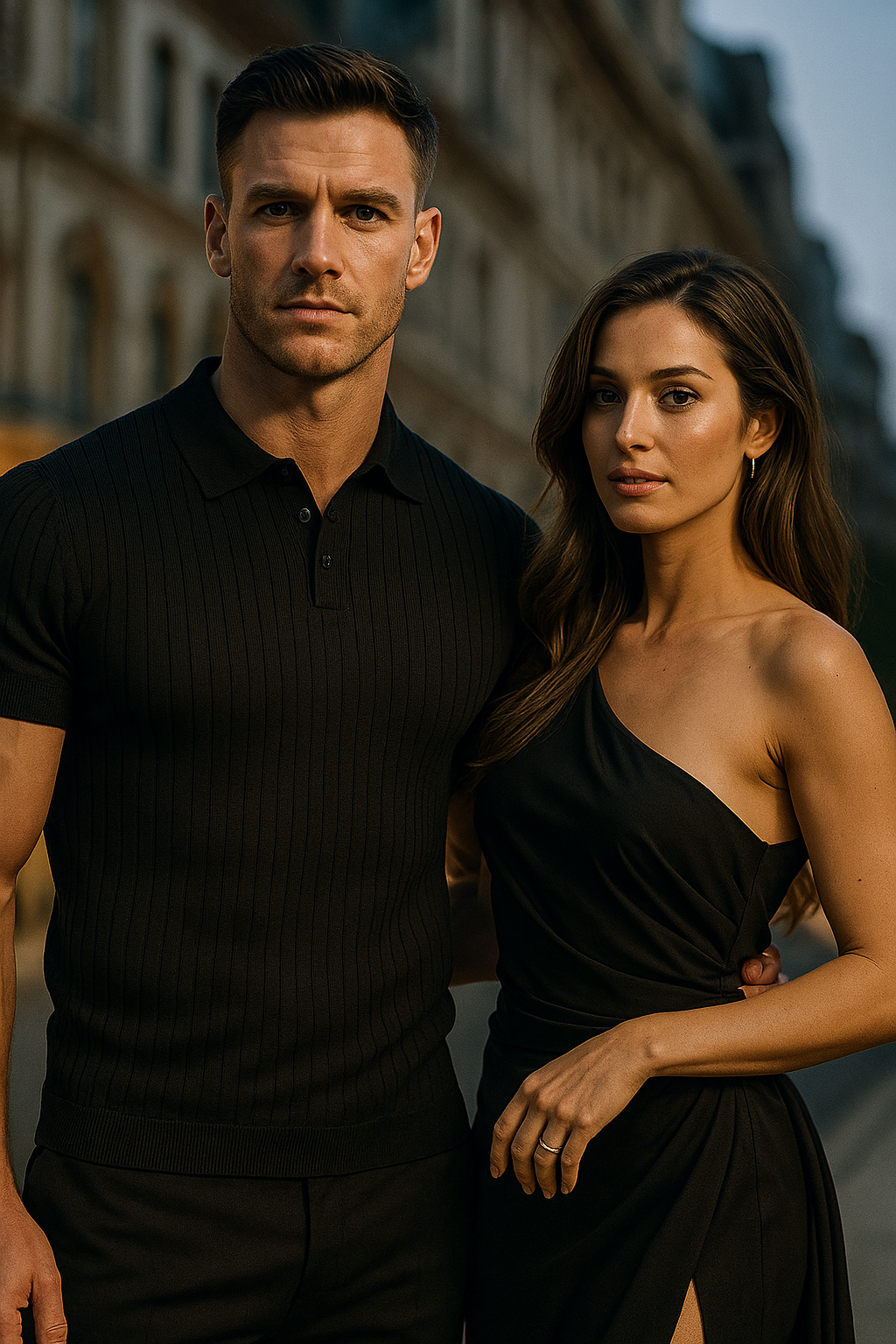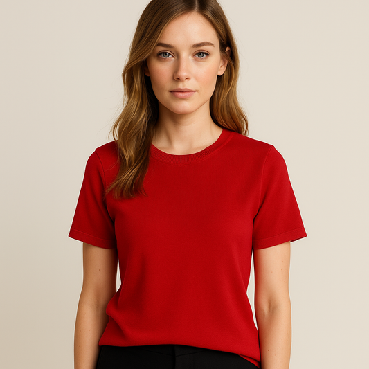 Knit Two-Piece Outfit – V-Neck Top & Pleated Skirt